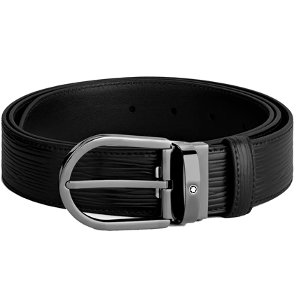 Черный кожаный ремень с подковообразной пряжкой 35мм от магазина премиальных ручек Premium Pens в Домодедово.